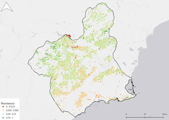 RESUMEN: Ante la aridificación creciente y el declive de los pinares de Pinus halepensis en Murcia, este estudio mapea con Landsat/NDVI la resistencia y resiliencia del dosel en >11.000 puntos. Se propone una estrategia de gestión dual: consolidar la resiliencia en zonas menos áridas y, en las más áridas, transitar hacia mosaicos abiertos y xerotolerantes, con seguimiento adaptativo.